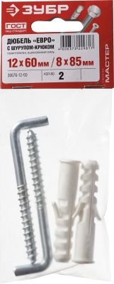Дюбели ЕВРО распорные с шурупом-крюком ЗУБР "МАСТЕР" 30676-12-60