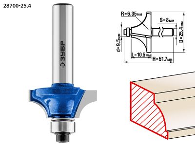 Фреза кромочная калевочная №1 D 25.4 мм ЗУБР "Профессионал" 28700-25.4 ― ZUBR SHOP