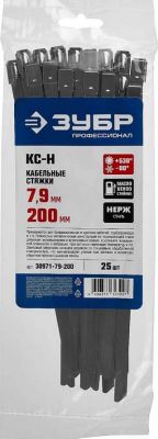 Кабельные стяжки нержавеющие КС-Н 7.9 х 200 мм, 25 шт. ЗУБР 30971-79-200