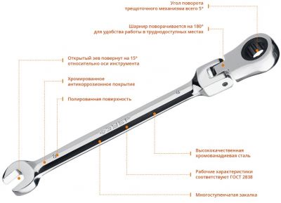 Комбинированный гаечный ключ трещоточный 8 мм шарнирный ЗУБР "Профи" 27101-08