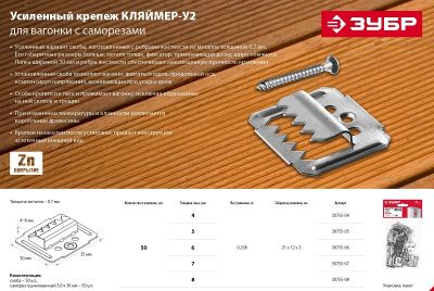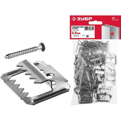 Крепеж для вагонки 5 мм, 50 шт., с саморезами КЛЯЙМЕР-У2 ЗУБР 30755-05