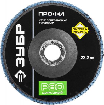 Круг лепестковый торцовый, КЛТ 1 ЗУБР "ПРОФИ" 36596-125-80 ― ZUBR SHOP