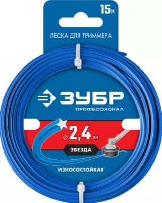 Леска для триммера "звезда" диаметр 2.4 мм, длина 15 м ЗУБР Профессионал 71020-2.4