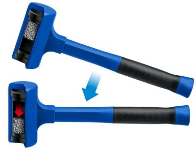 Рабочая часть кувалды имеет пустотелую цельнолитую оболочку из ударопрочного пластика, облитого эластомером