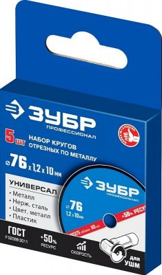 Набор кругов отрезных по металлу, 5 шт., 76х1.2х10 мм ЗУБР 36200-76-1.2-H5_z03