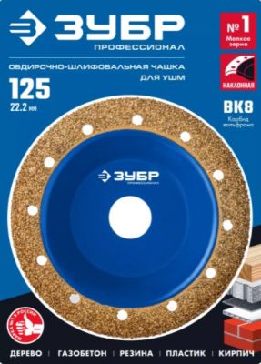 Обдирочно-шлифовальная чашка №1 125 мм, мелкое зерно ВК8, наклонная ЗУБР 33435-1