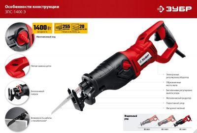 Мощная и простая в обращении сабельная пила ЗУБР обеспечивает качественный и быстрый распил практически любого строительного материала.