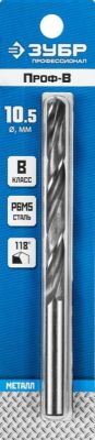 Сверло по металлу Ø 10.5 x 133 мм, сталь Р6М5, класс В ЗУБР 29621-10.5